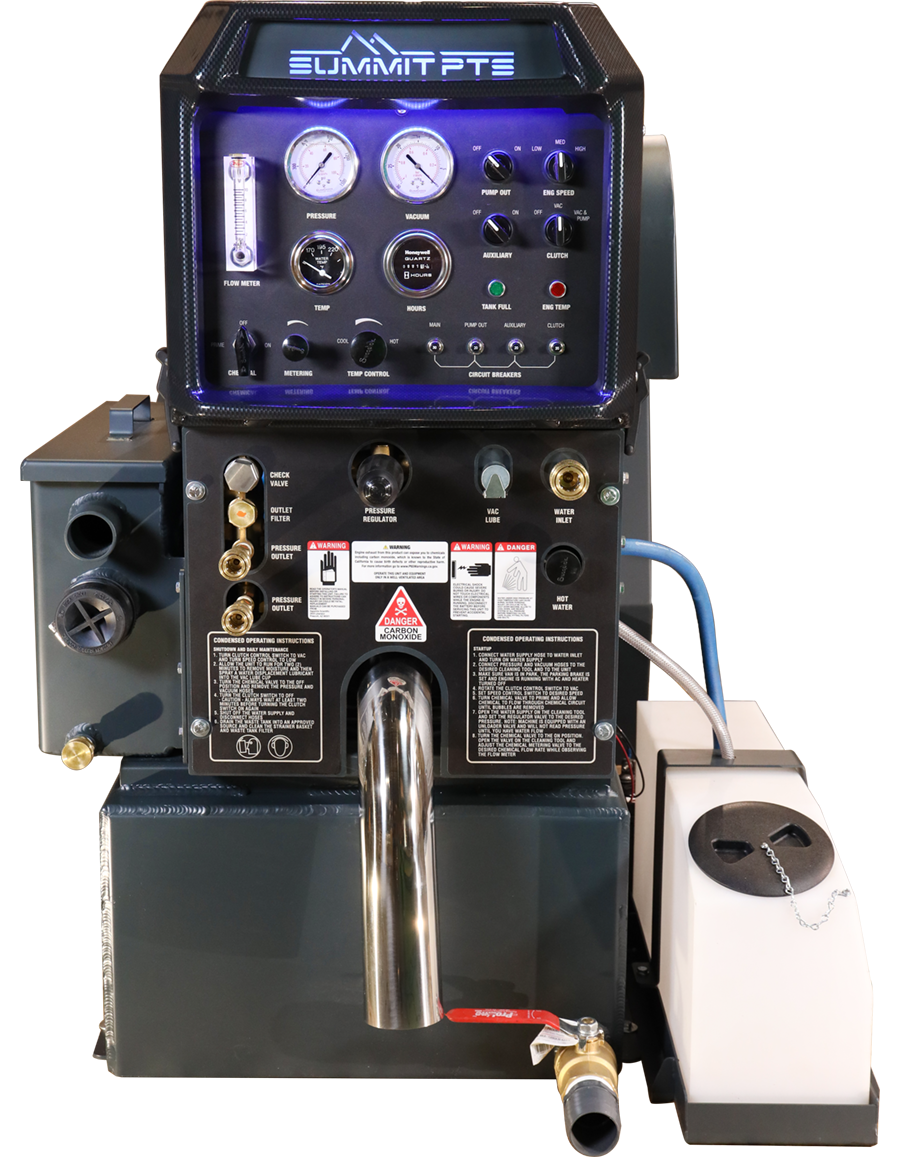 A complete redesign from the ground up, the Summit PTS Direct Drive delivers the superior performance, reliability and durability that have made Legend Brands the #1 selling manufacturer of truckmounts. Featuring proven components including stainless steel finned-tube coil heat exchangers to pull heat from the blower, a flat plate engine coolant heat exchanger, Gardner Denver blower and General pump, the Summit is easy to operate and delivers reliable heat and exceptional durability.